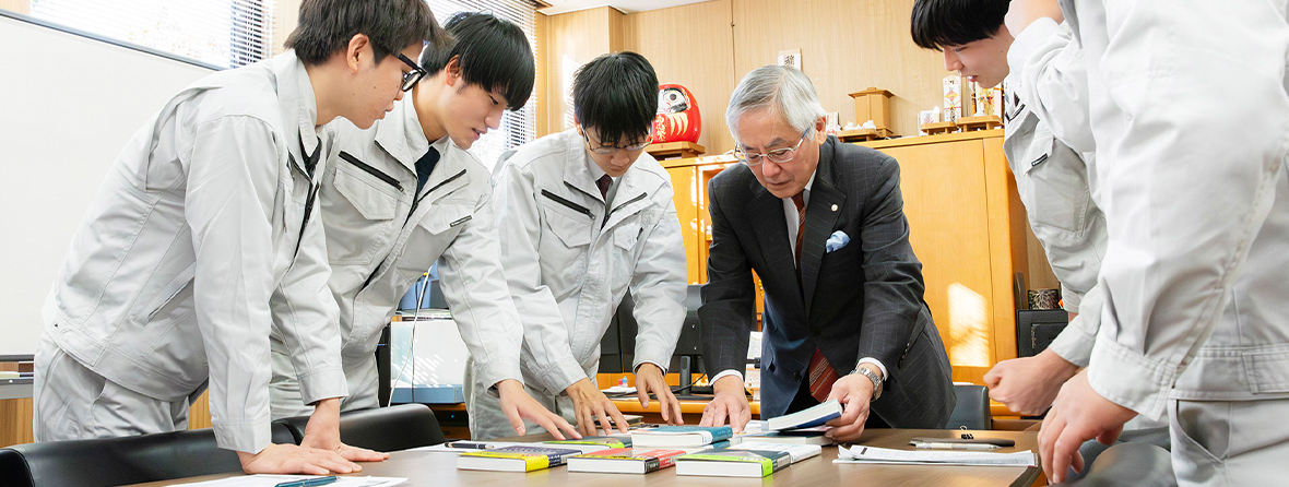 社長 現場を任されて初めて“一人前”と言えます。そのためには、「安全」「品質」「工程」「環境」原価」といった、全体を把握する力が必要です。お客様や設計事務所、協力業者様、近隣の方々ともやり取りするので、広い視野を持って、社会性や知識をどんどん吸収していってください。