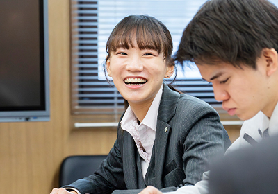 岡村 入社してから、様々な部署の方が気軽に話しかけてくれるので、困ったときもすぐに相談できる環境が整っています。本当に恵まれているなあと、日々感じています!分からないことはまだまだたくさんありますが、大きなミスを避けるために、小さな疑問でもしっかり確認すること、進捗状況をこまめに報告することも大切だと学びました。これからは、業務だけでなく資格も含めてもっと知識を増やして、さまざまな業務を任せてもらえるように成長していきます。